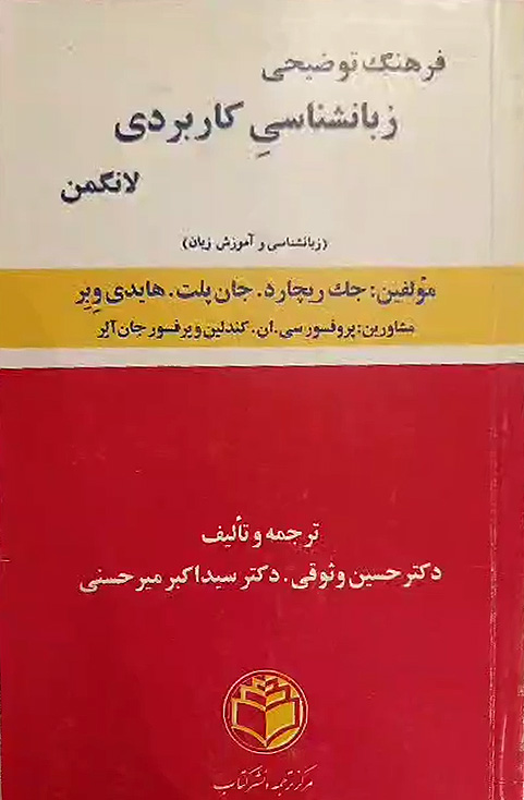 فرهنگ توضیحی زبانشناسی كاربردی لانگمن (از جك ریچارد و دیگران)، ترجمه، با همكاری سید اكبر میرحسنی، تهران، مركز ترجمه و نشر، ۱۳۷۱