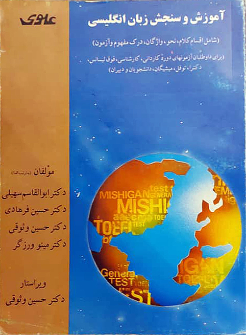 آموزش و سنجش زبان انگلیسی، تألیف (با همكاری فرهادی، سهیلی و ورزگر) ۹۴۹ صفحه. تهران، انتشارات علوی، ۱۳۷۲، (برندهی لوح تقدیر كتاب سال ۱۳۷۲، مركز انتشارات دانشگاه تهران)